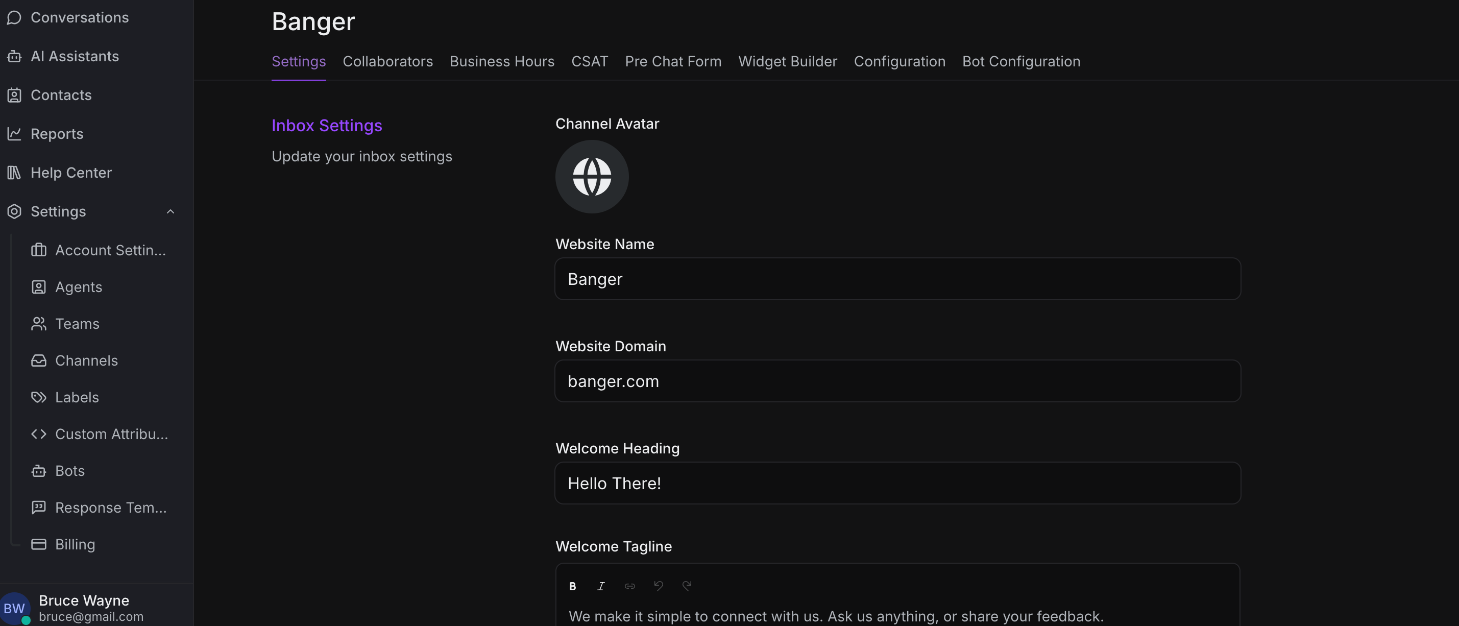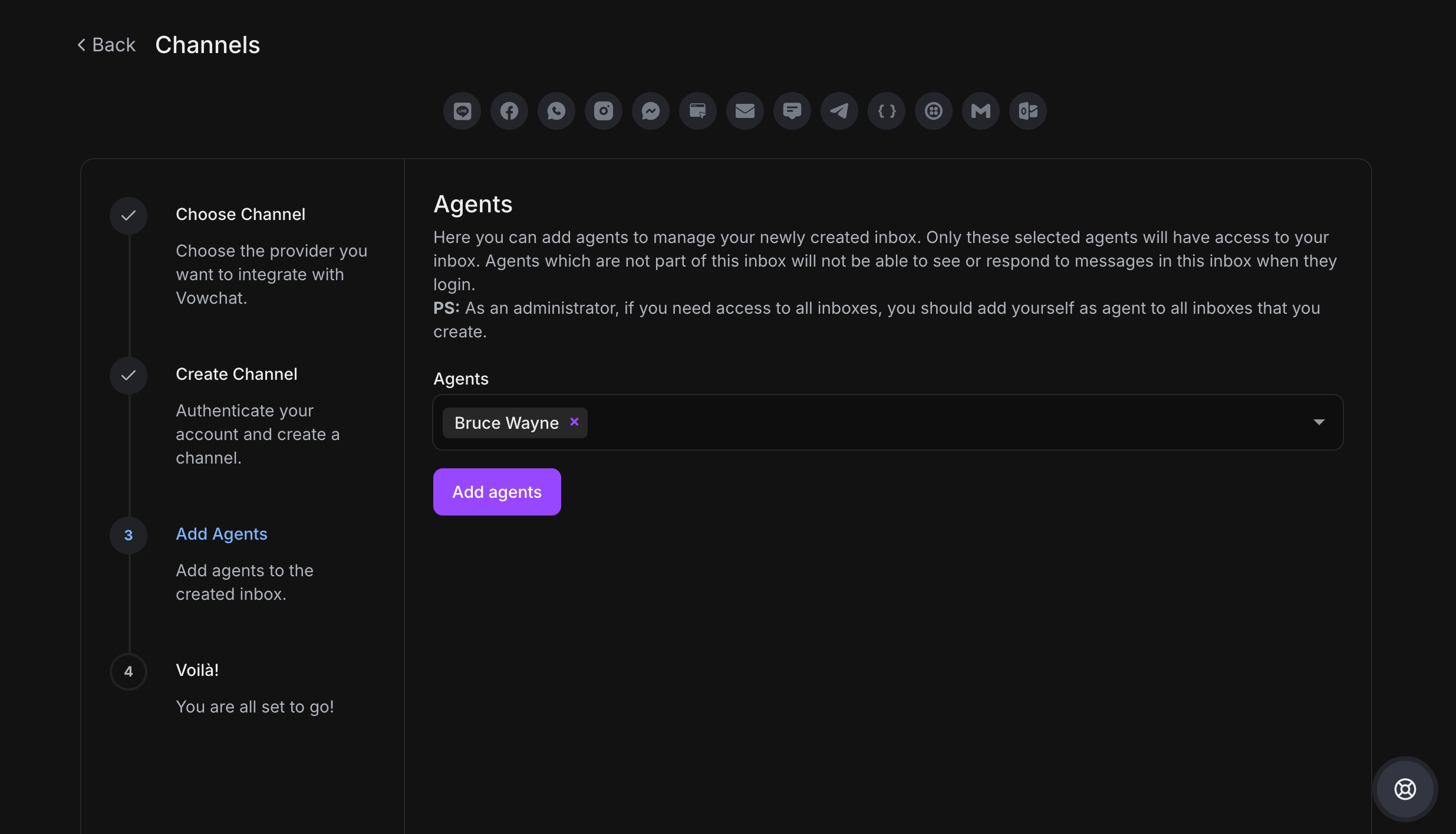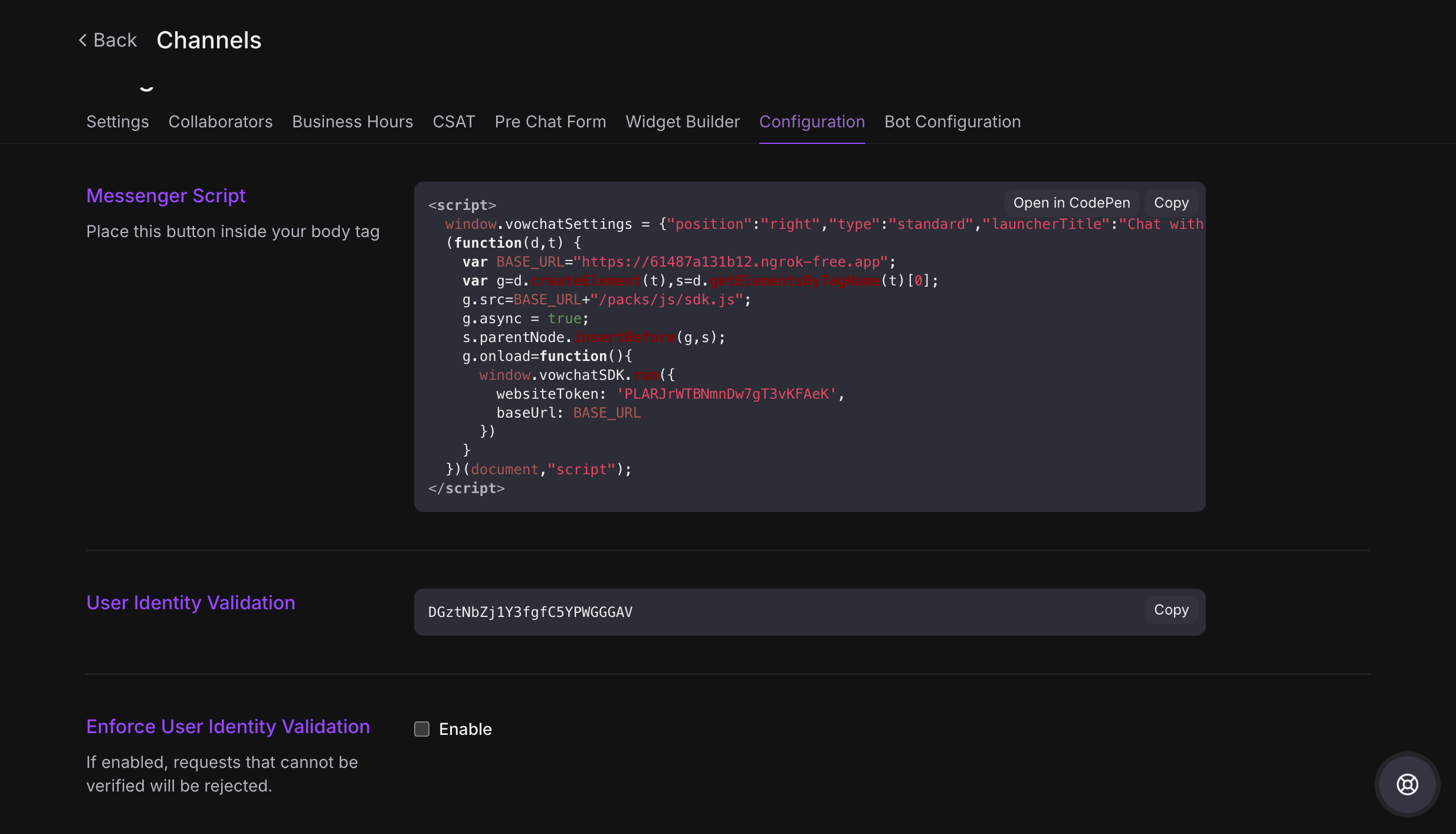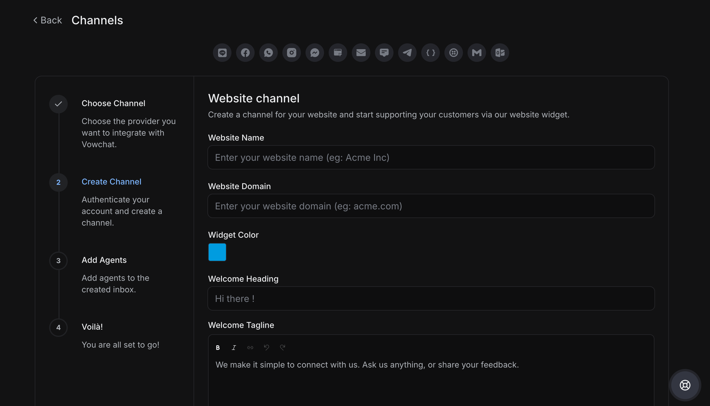 This guide walks you through creating and configuring your website live chat channel in VowChat.
