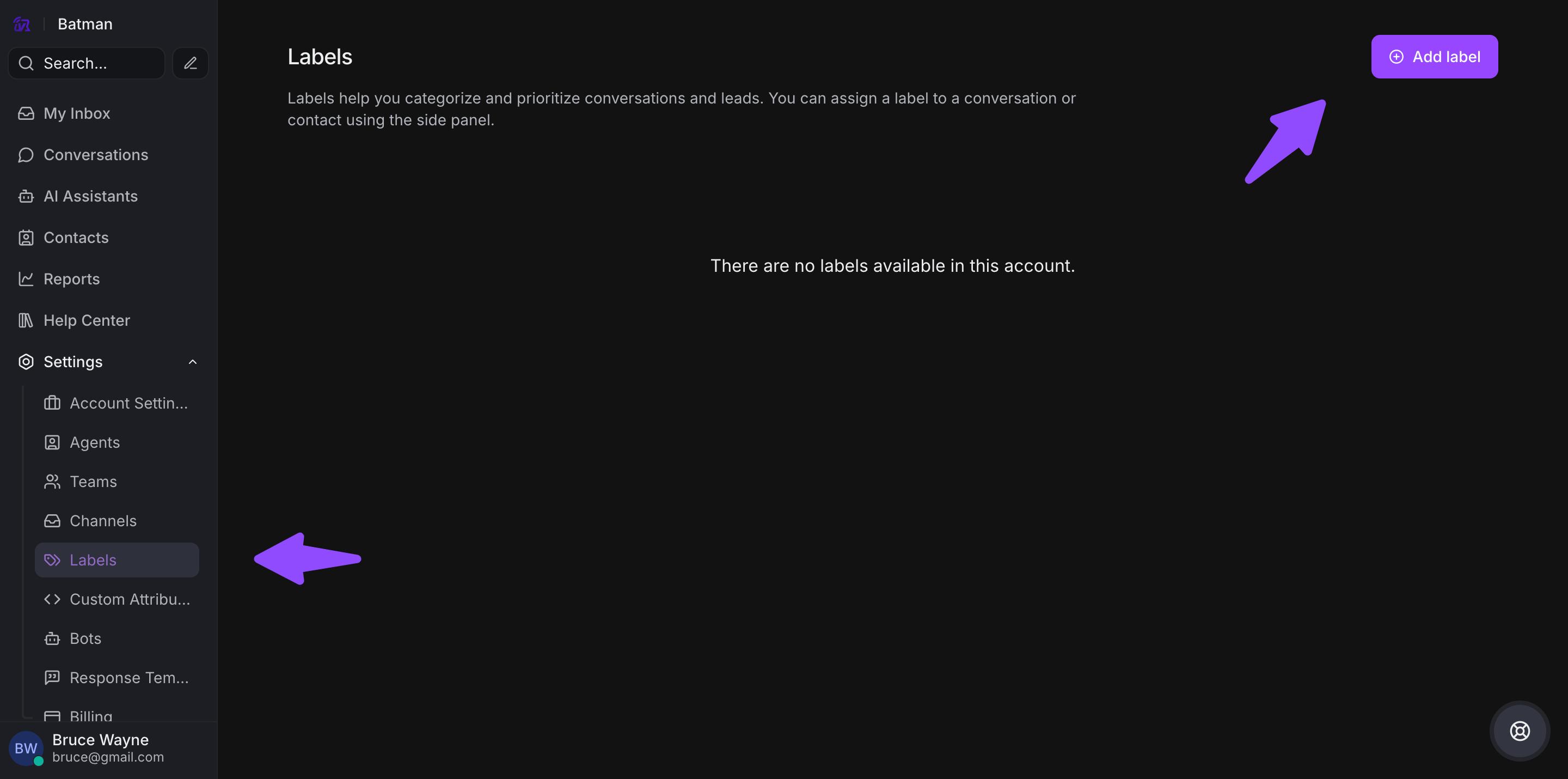 Step 1. Click Settings → Labels → Add Label button