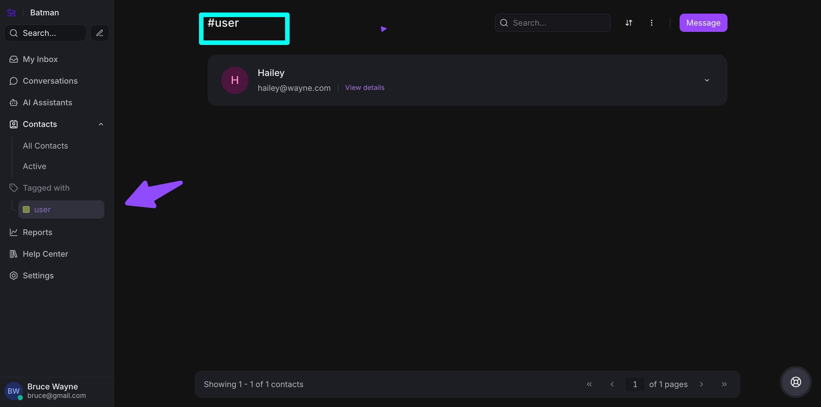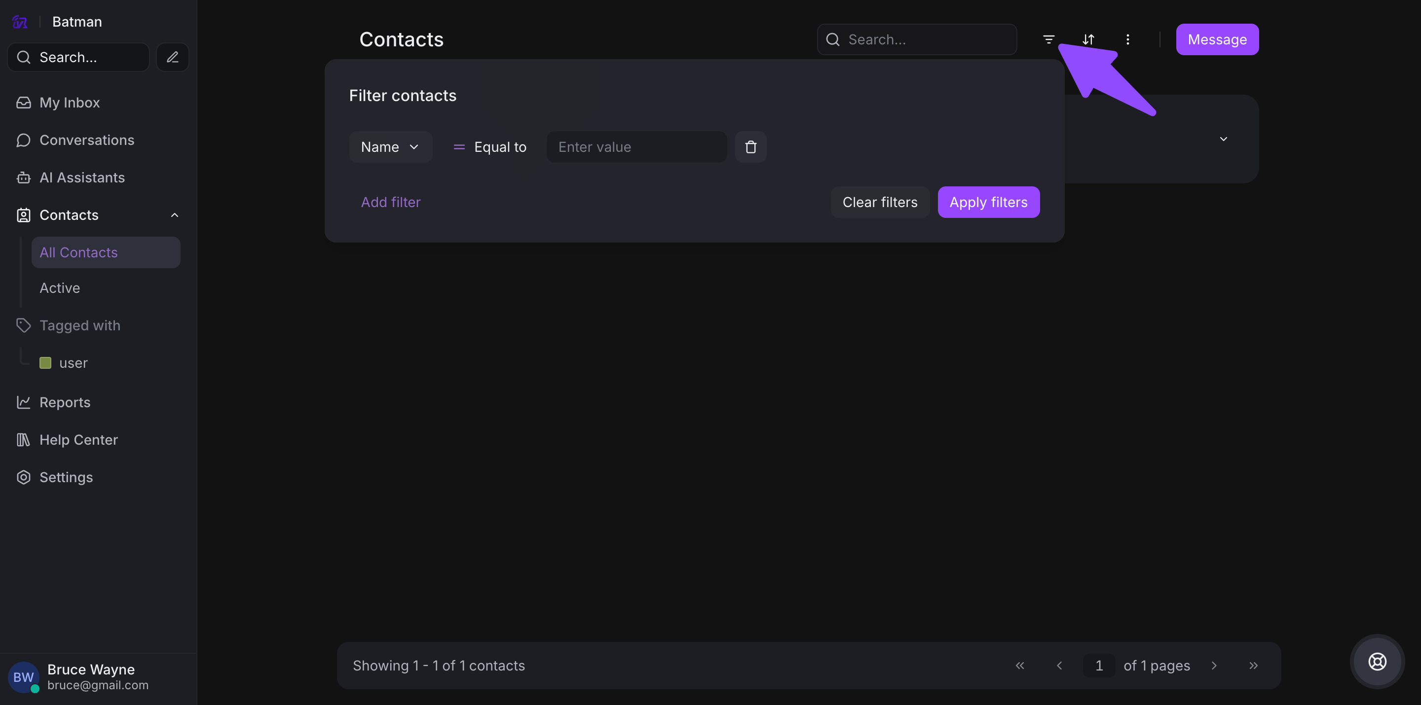 You can filter and view contacts by specific labels to focus on particular customer segments.