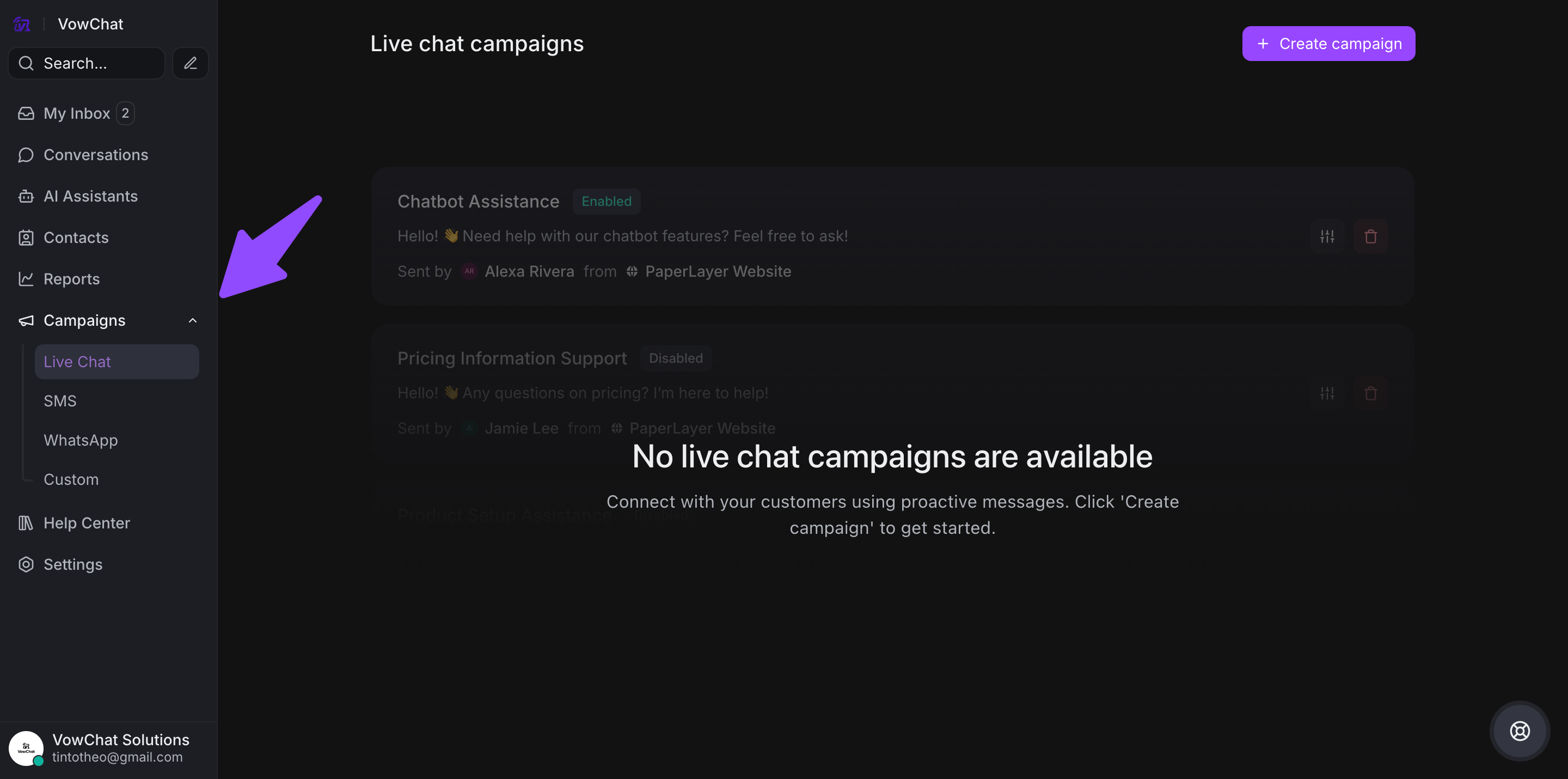 Start creating campaigns from Settings → Campaigns to engage customers proactively.