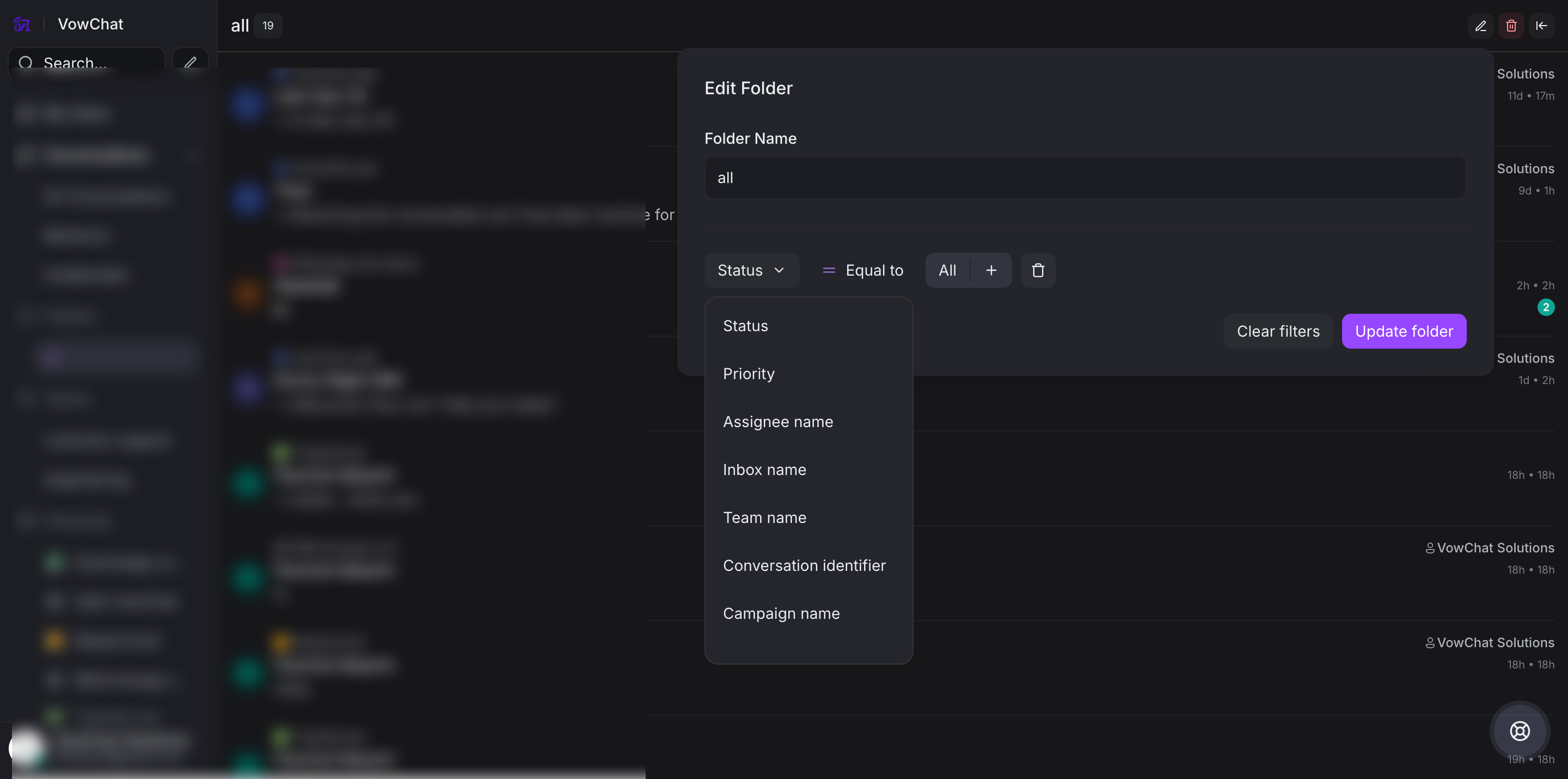 VowChat provides multiple sorting options to help agents efficiently manage and prioritize customer conversations.
