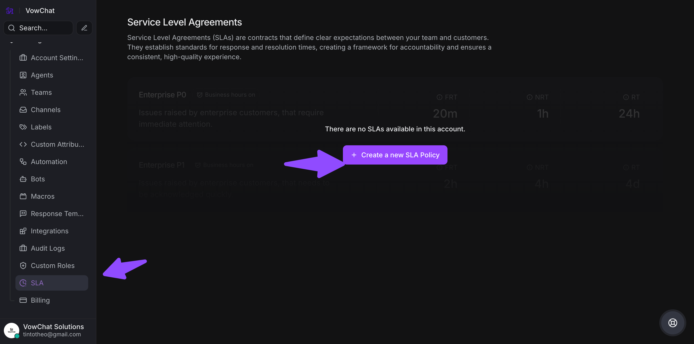 Example: Apply "Enterprise P0" SLA for urgent conversations from specific email domains