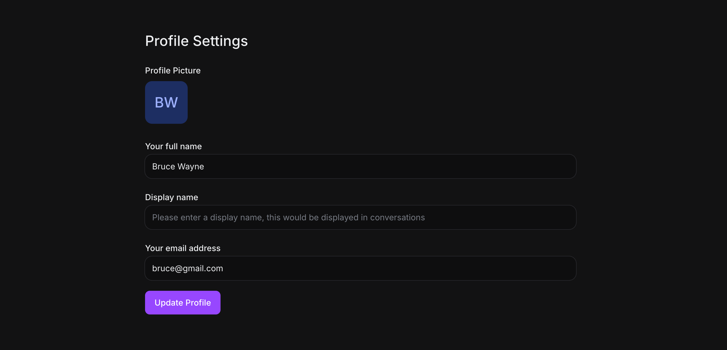 After making any changes, click "Update Profile" to save. You'll see a confirmation message when your profile is successfully updated.