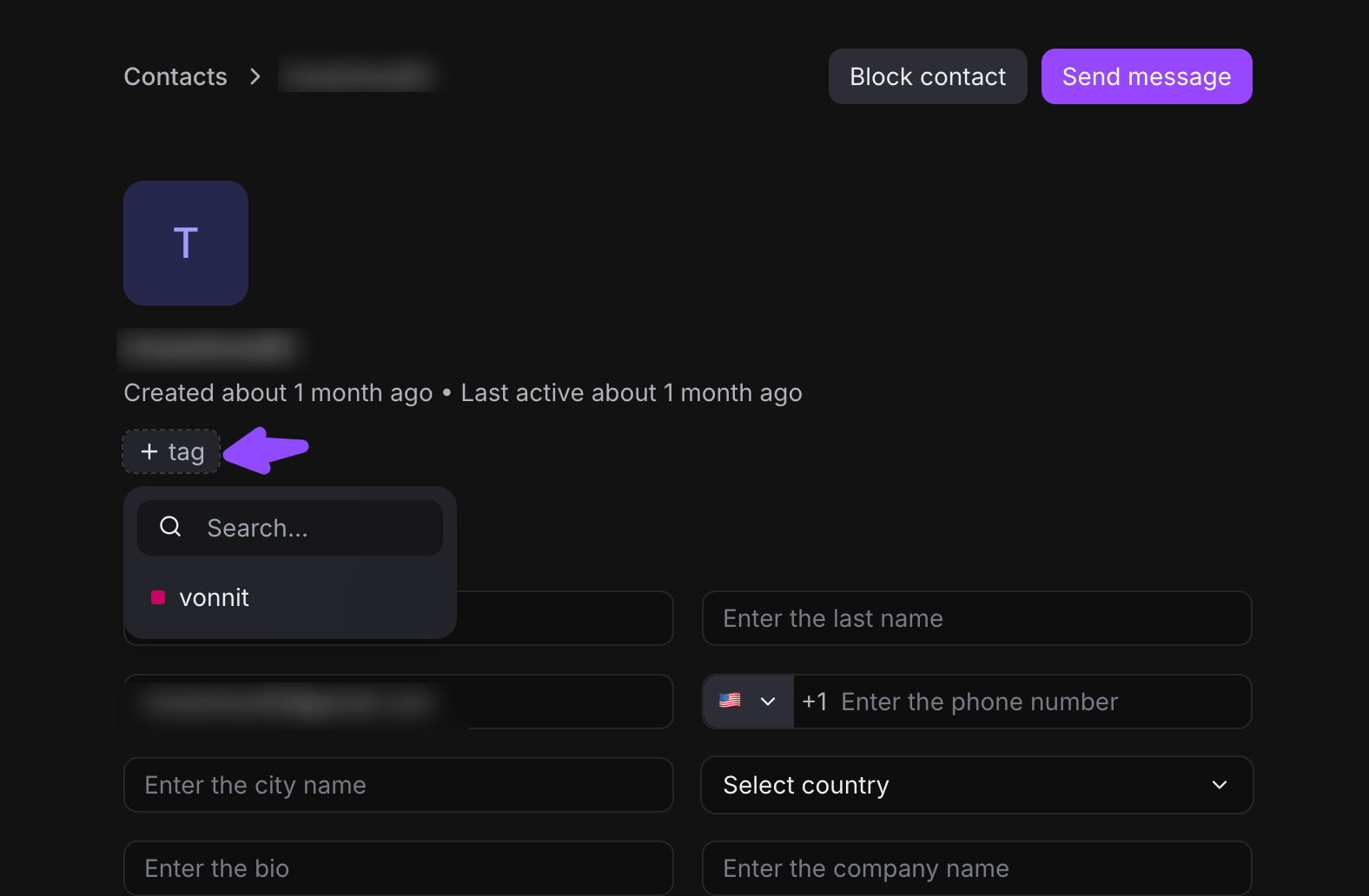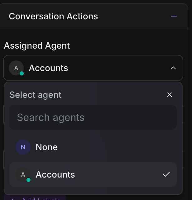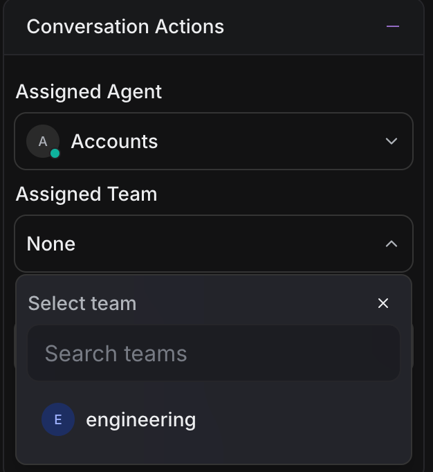 Step 1. On your dashboard, when you open a particular conversation, you'll find a section that reads "Conversation Actions". Click the + sign to expand it.