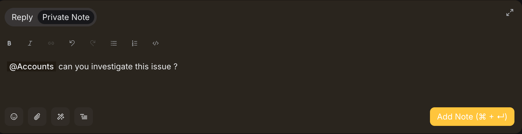 When you want to talk to your teammates within a conversation thread about a customer's question, you can use Private Notes. These are internal comments that won't be visible to your customers.
