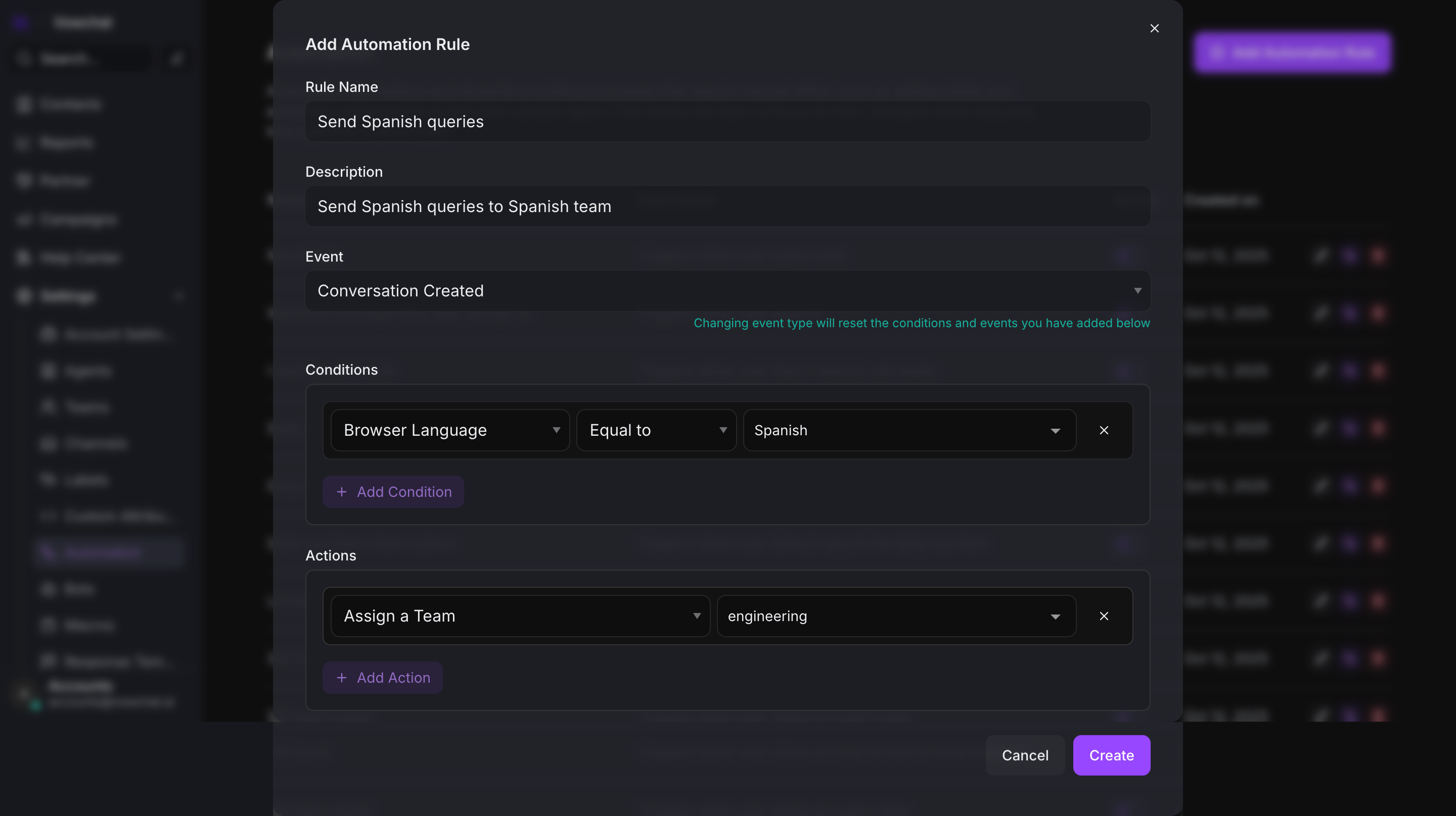 If a customer's browser is set to Spanish, automatically assign to the Spanish Support team.