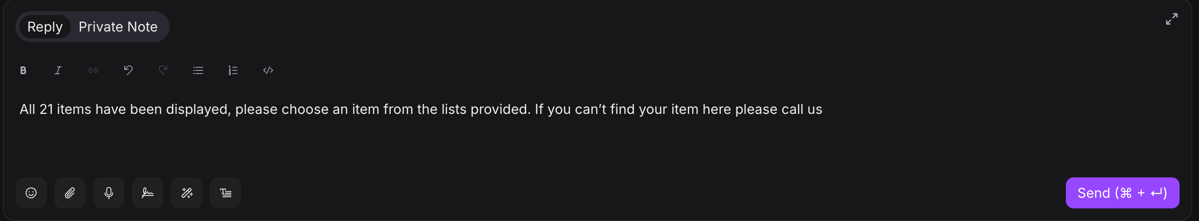 Step 2. Either type the shortcode directly, or browse through the list and click on a response template. The template content will populate your reply box.